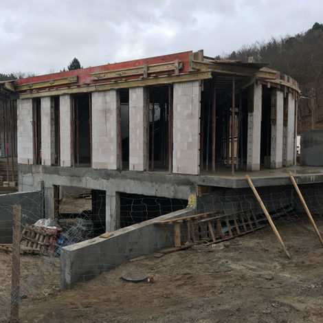Budowa budynku biurowego dla firmy Q-Install w Gdyni przy ul. Swarzewskiej. Stan surowy otwarty.